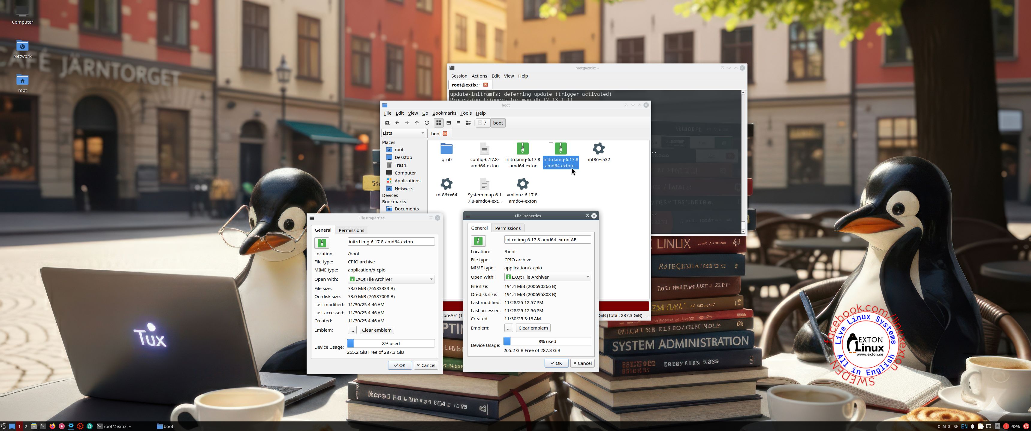 NOTE: I had to install (keep) Dracut, which is a replacement for initramfs-tools in Ubuntu from version 25.10. Dracut is an initramfs generator using udev. To be able to install/keep Dracut I had to uninstall important live tools, which means that the initrd.img (in /boot) can’t be used when creating a new ISO with Refracta Snapshot. I have therefore kept a copy of a bigger and necessary initrd.img in /boot. It is called initrd.img-6.17.8-amd64-exton-AE. Before starting Refracta Snapshot you must delete /boot/initrd.img-6.17.8-amd64-exton and change the name of initrd.img-6.17.8-amd64-exton-AE to initrd.img-6.17.8-amd64-exton. Watch a screenshot showing that initrd.img-6.17.8-amd64-exton-AE is much bigger than initrd.img-6.17.8-amd64-exton – 191MB compared to 73MB. You should always keep a copy of initrd.img-6.17.8-amd64-exton-AE. The reason for installing/keeping Dracut is that it is needed if you want to install Ubuntu’s original kernel. Right now kernel 6.17.0-6-generic. Watch a screenshot when said kernel is being installed.