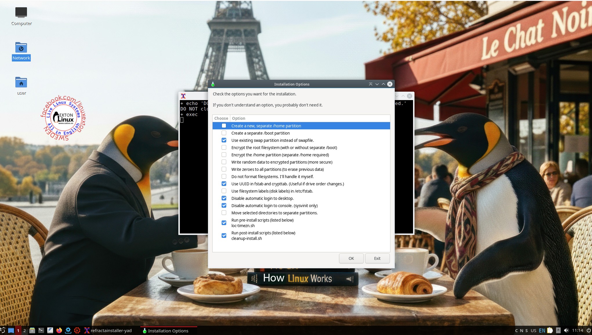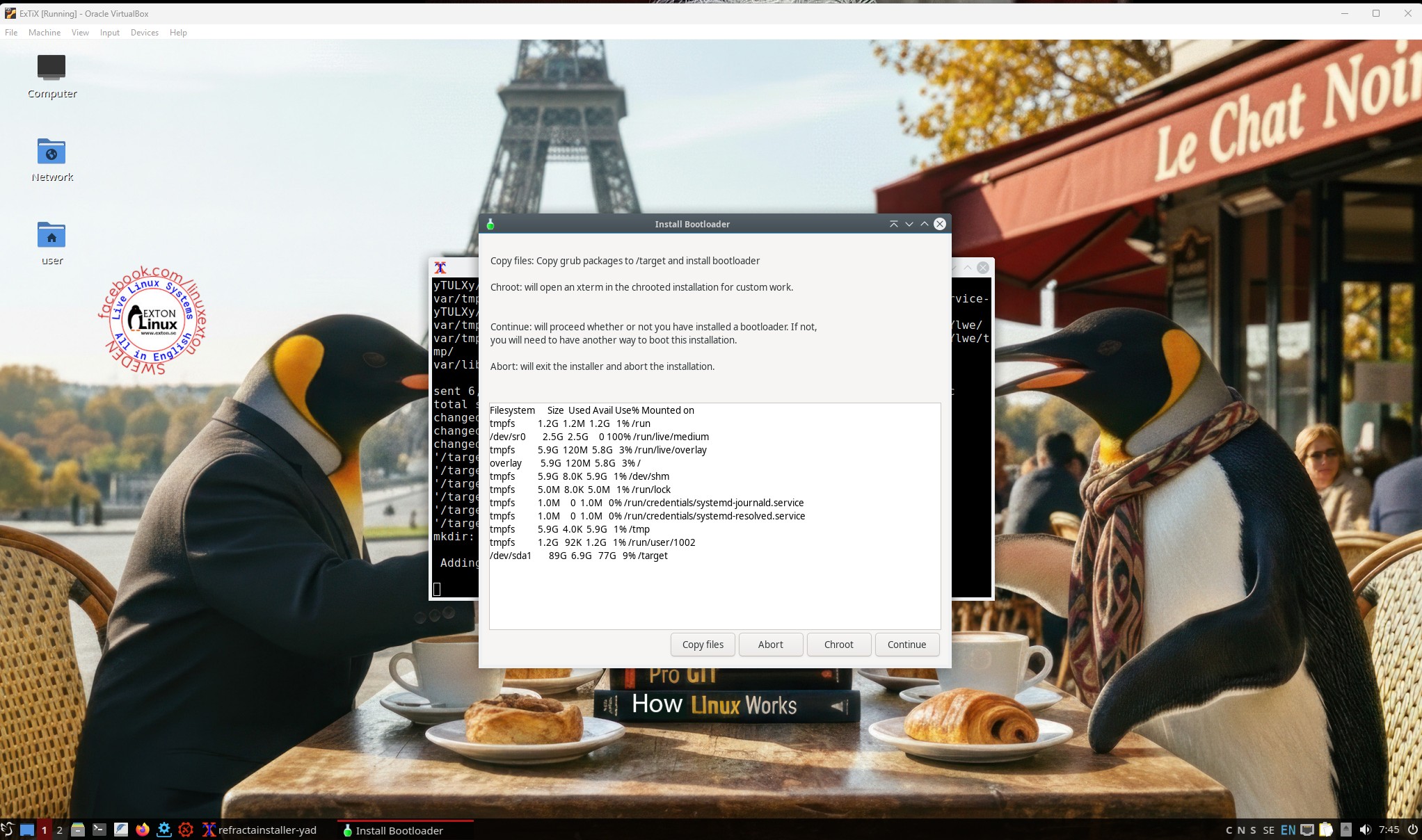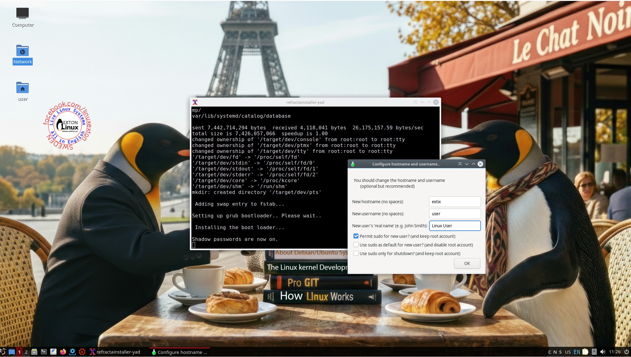 Just start the install program Refracta Installer from the LXQt Menu/System and follow the instructions. You should read my general Linux Install Instructions first. Regarding the installation of ExTiX 25.12 you should think of the following: